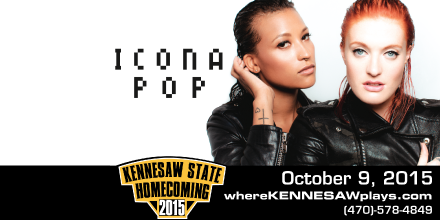 The international pop duo Icona Pop is making an appearance and coming to Kennesaw State University’s 2015 homecoming . In the past, Kennesaw has brought the student body a number of hip-hop artist to perform the yearly event, but this is a different move that even the students are questioning. Some have never heard of Icona Pop and Kennesaw’s students via social media have found themselves to complain and question the decision on bringing the duo to campus. With a growing diverse student body pop seems to be the most well rounded genre that can please everybody. With a number of popular songs on the pop charts, the students will not be disappointed.