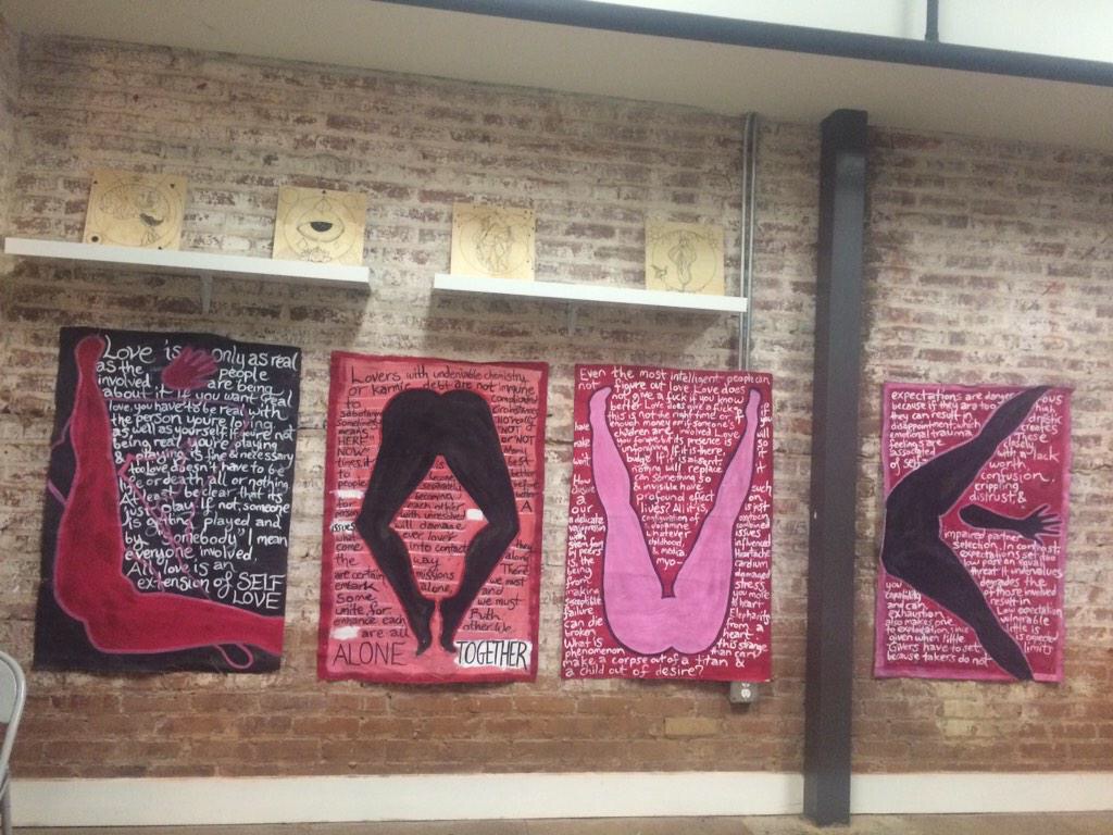 The Major Gallery on Peters Street Atlanta held an emotionally fueled art exhibit featuring millennial artists. Some artists featured were Makeda, Myles E. Johnson, Afrodite Gold, Cleopatra The Fox, Mreeuh Chang, Kendrick Daye and Kye. Sexually influenced paintings, gold covered women and drunk texts depicted with printmaking flowed through this beautiful showcase.